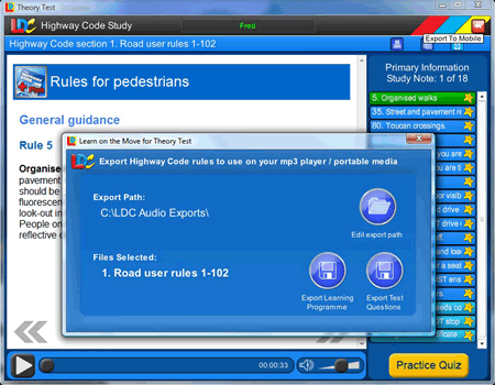 - Learn on the Move to allow you to download questions and answers as MP3 files or Podcasts or sync direct with LDCs Free Android and iOS Theory Test Apps.The only product to allow you to undertake Theory Tests either on your PC or your mobile App and synchronise your results.